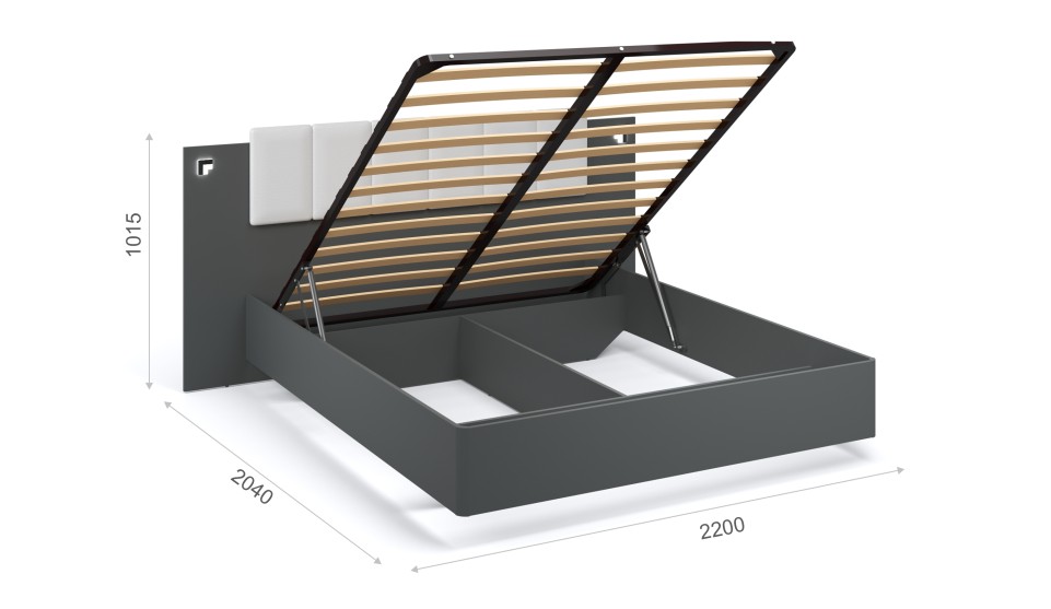Кровать МИ 160 (подъемник) Мишель Антрацит/Белый жемчуг