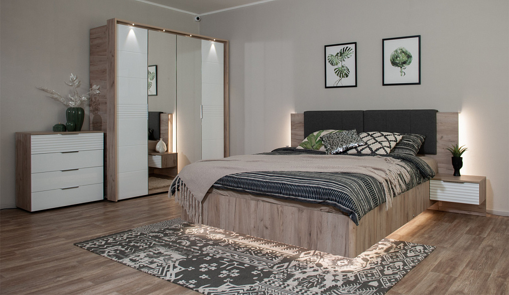 Кровать МИ 180х200 без ламелей Джулия Крафт серый/Белый глянец