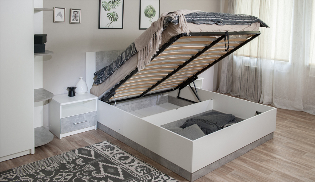 Кровать с подъемным механизмом 160х200 Аврора Белый/Ателье светлый