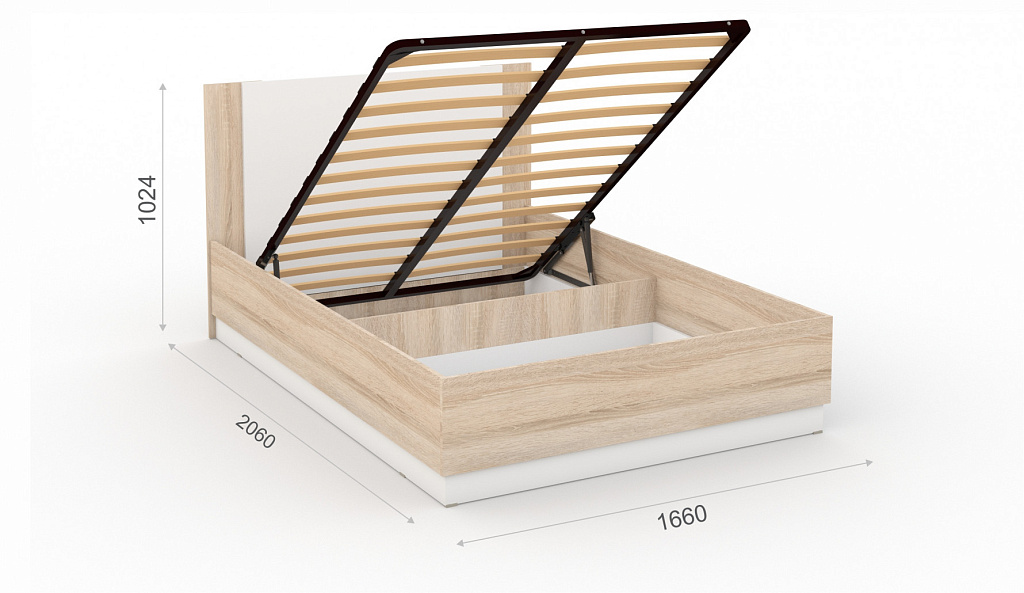 Кровать с подъемным механизмом 160х200 Аврора Сонома/Белый