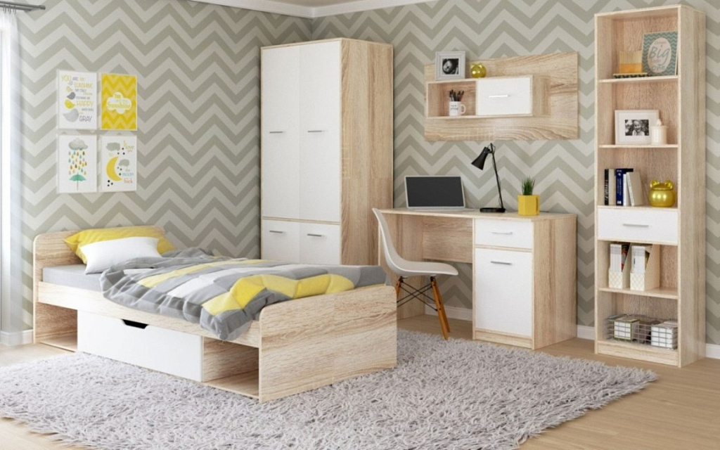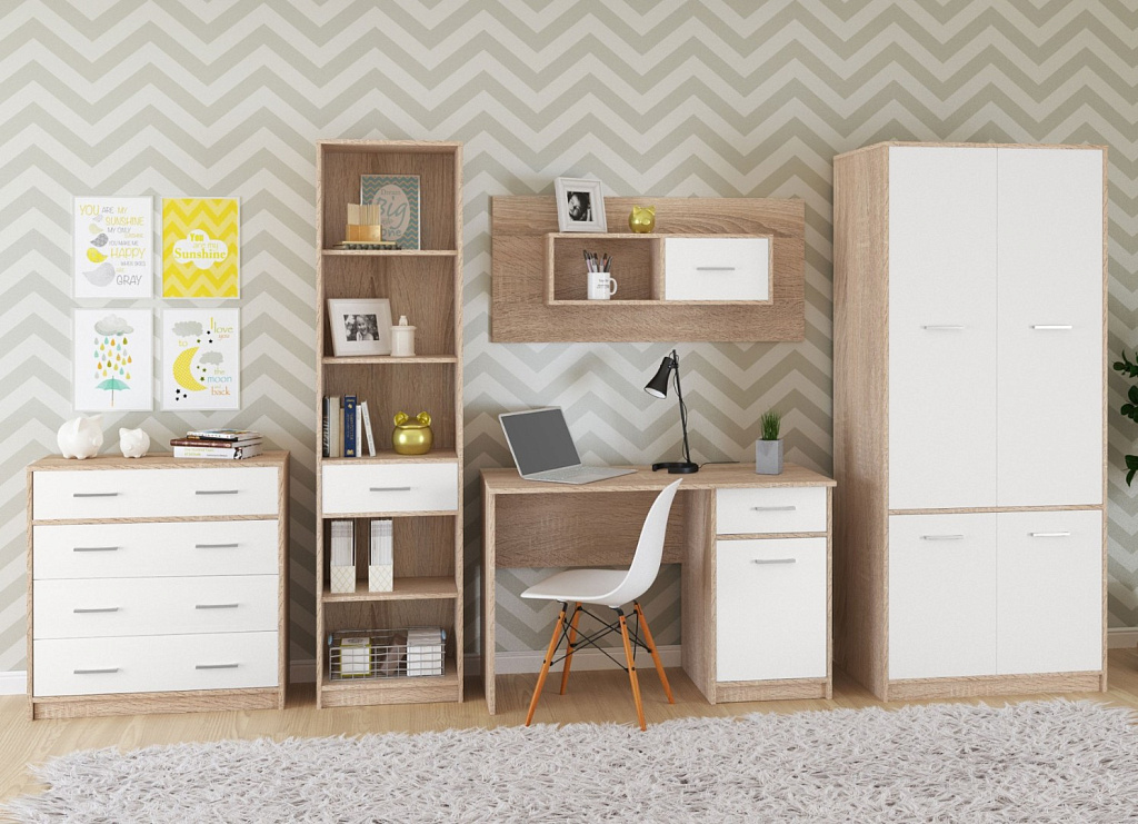 Полка навесная 1д Стелс Сонома/Белый