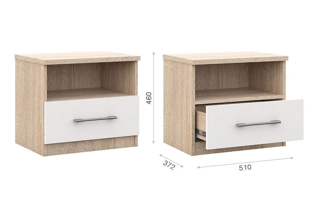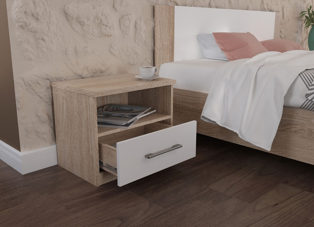 Прикроватная тумбочка (2 шт) Аврора Сонома/Белый