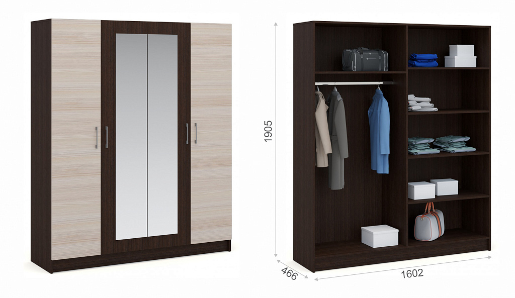 Распашной шкаф 4дв Алена Венге/Дуб молочный