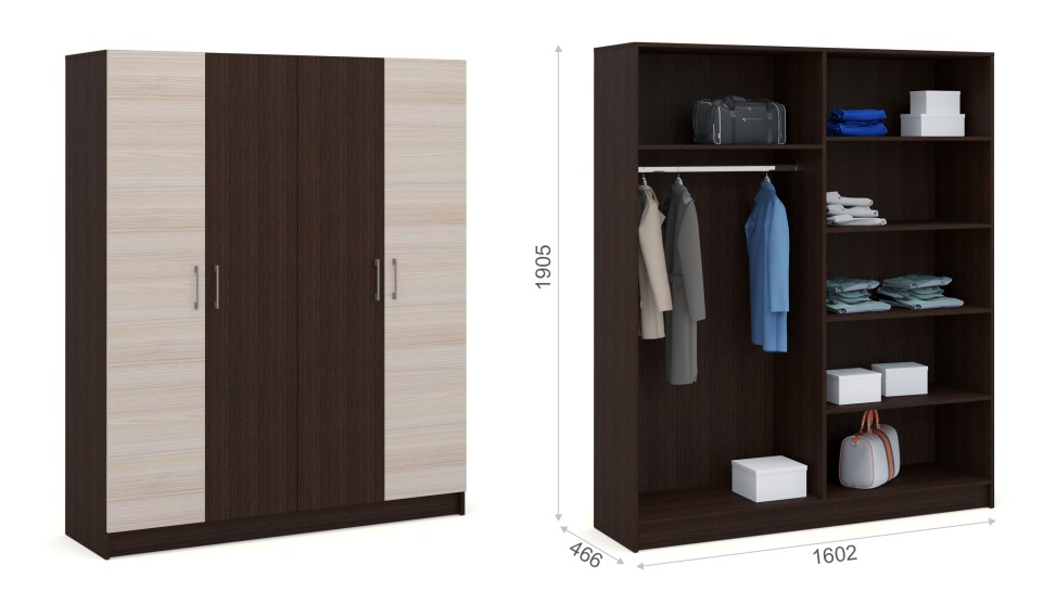 Распашной шкаф 4дв без зеркал Алена Венге/Дуб молочный