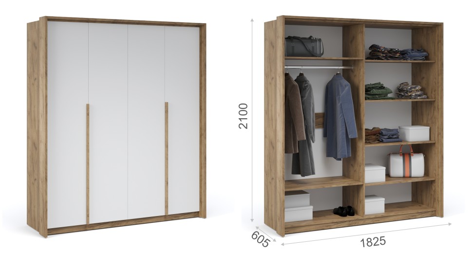 Распашной шкаф 4дв Мишель Крафт золотой/Белый жемчуг