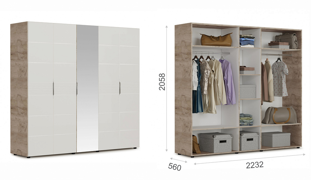 Распашной шкаф 5дв (ДДЗДД) Джулия Крафт серый/Белый глянец
