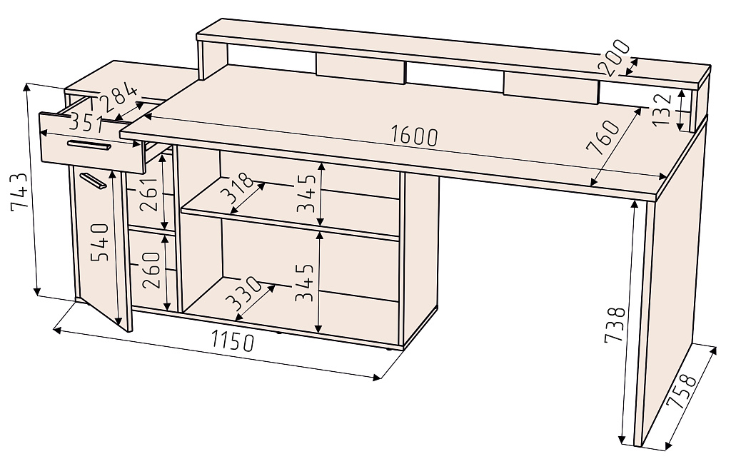 Столешница:  22мм. Направляющие шариковые. Ручка С24 матовый чёрный. Мебельные опоры.