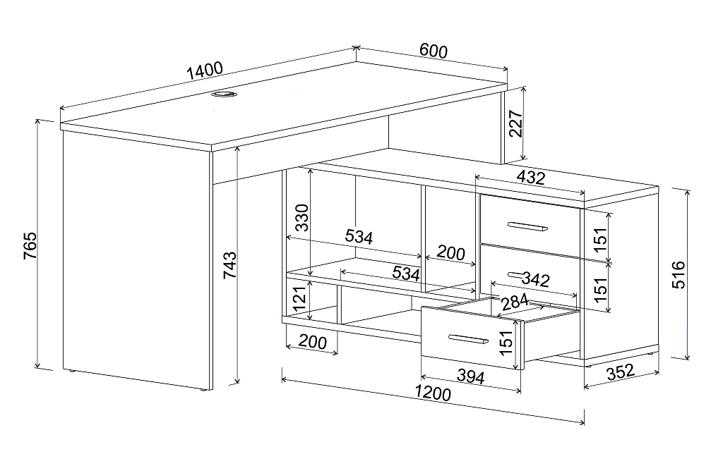 Столешница 22мм. Направляющие шариковые. Ручка С24 матовый чёрный. Мебельные опоры.