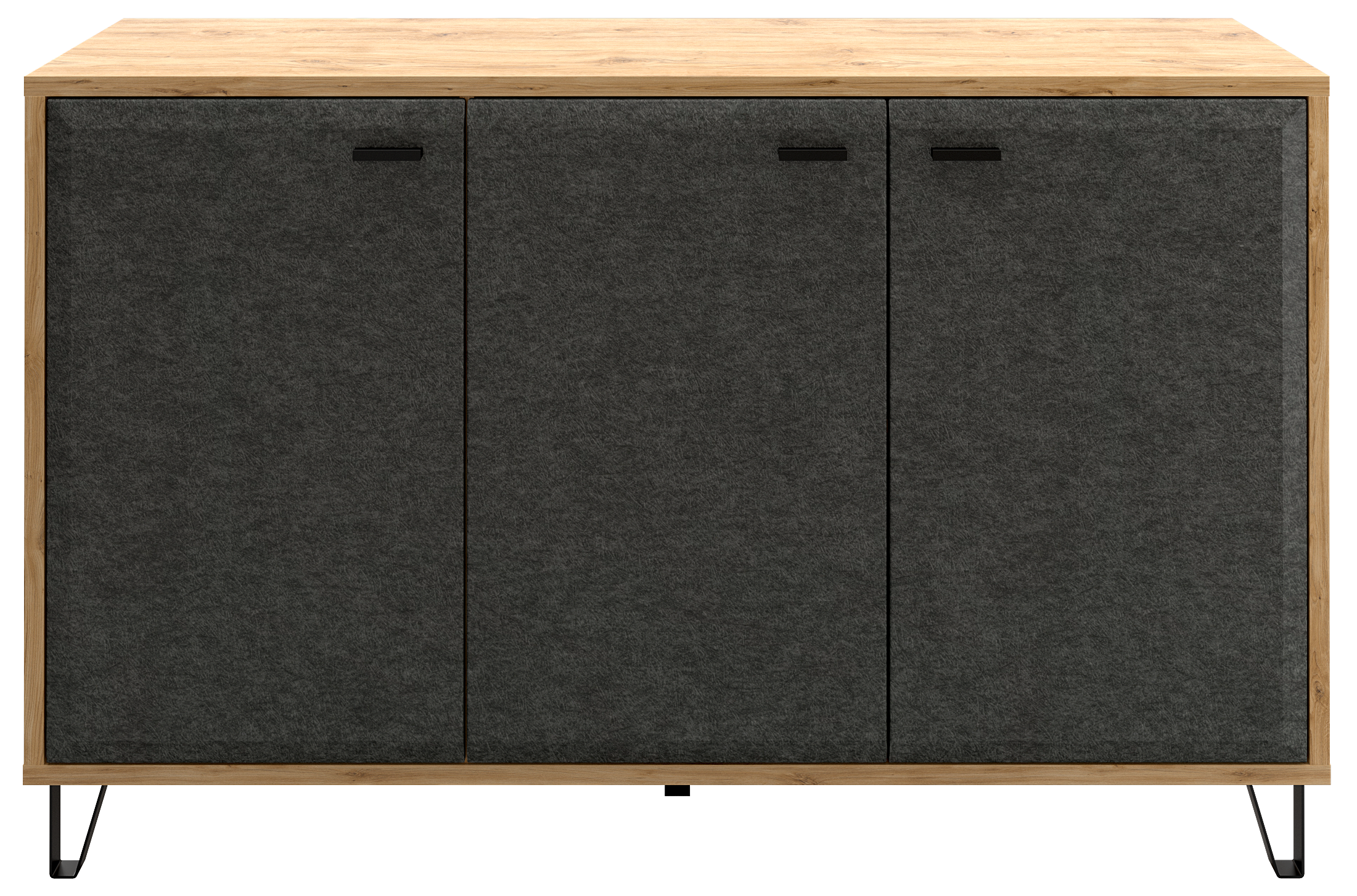 - Скругленная форма фасада в цвете "Графит" и стильные металлические ножки позволят безупречно оформить гостиную комнату;