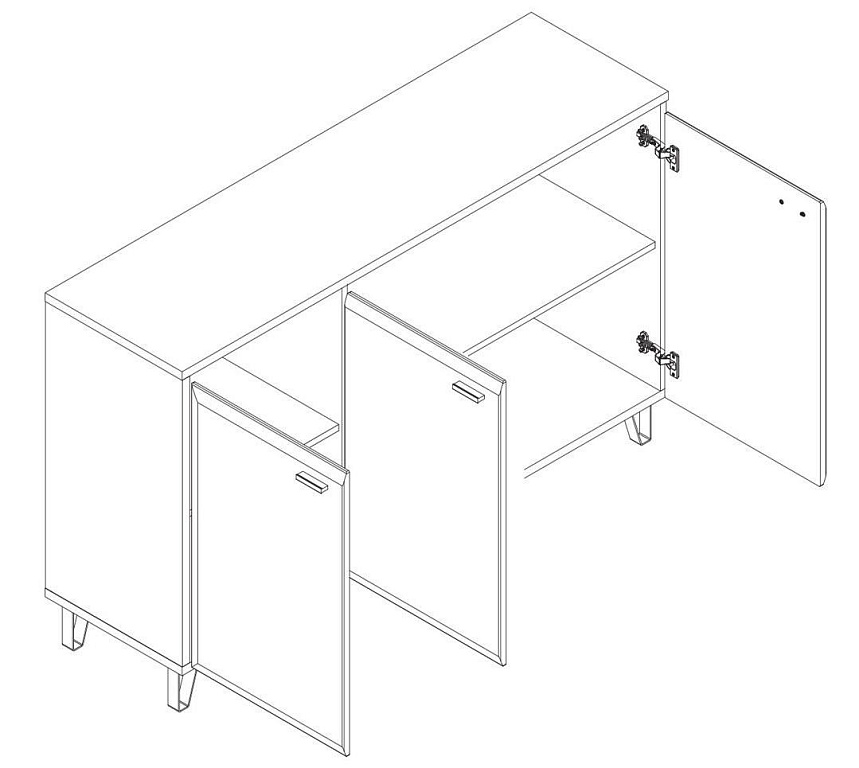 - За 3-мя распашными глухими дверьми расположены отделения с полками;