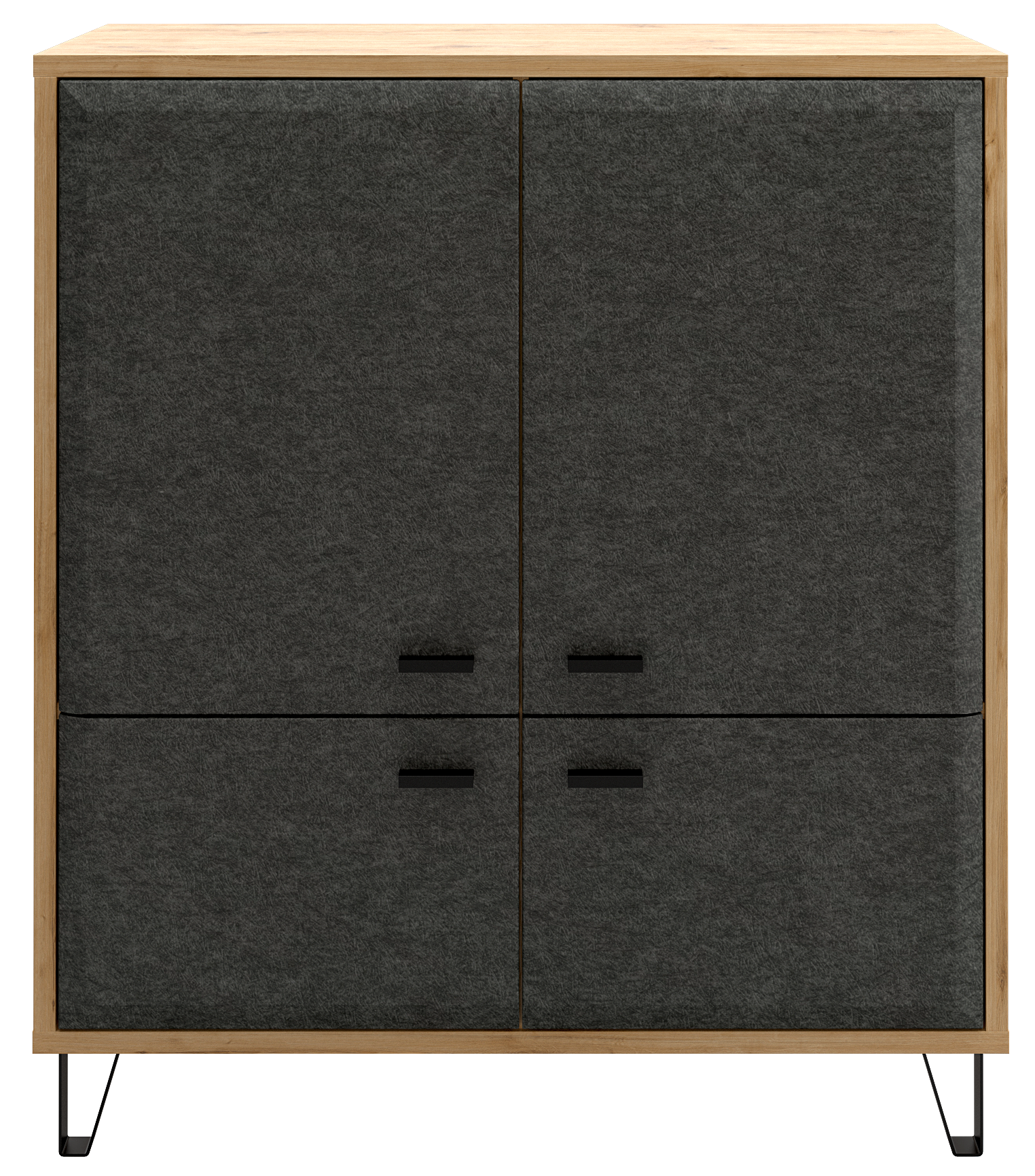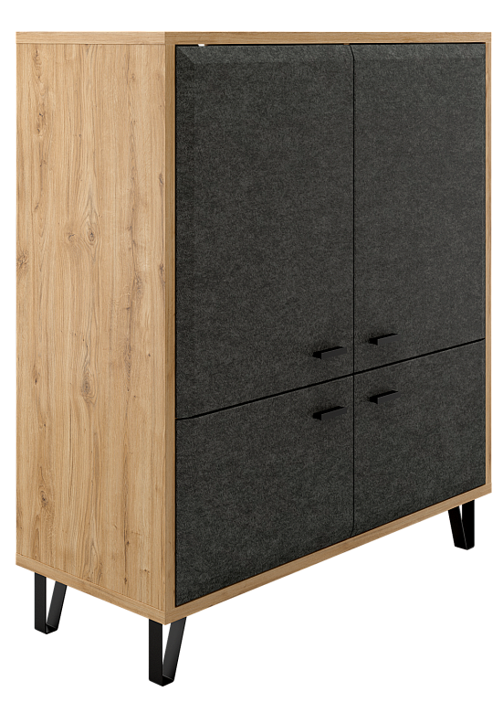 - Скругленная форма фасада в цвете "Графит" и стильные металлические ножки позволят безупречно оформить гостиную комнату.