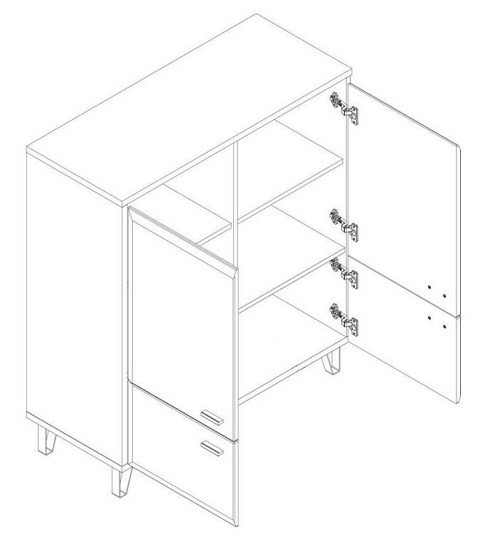 - За 4-мя распашными глухими дверьми расположены отделения с полками;