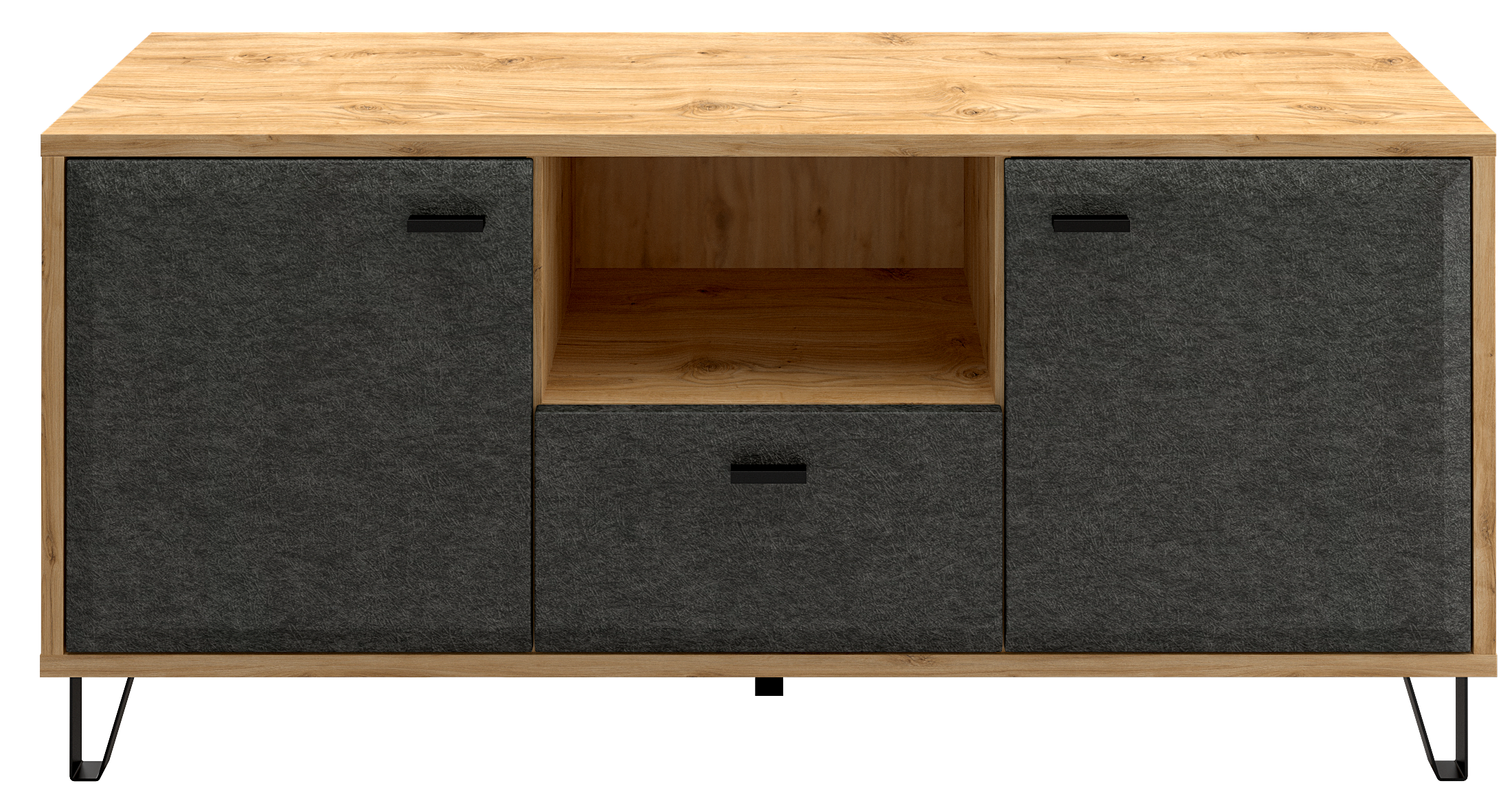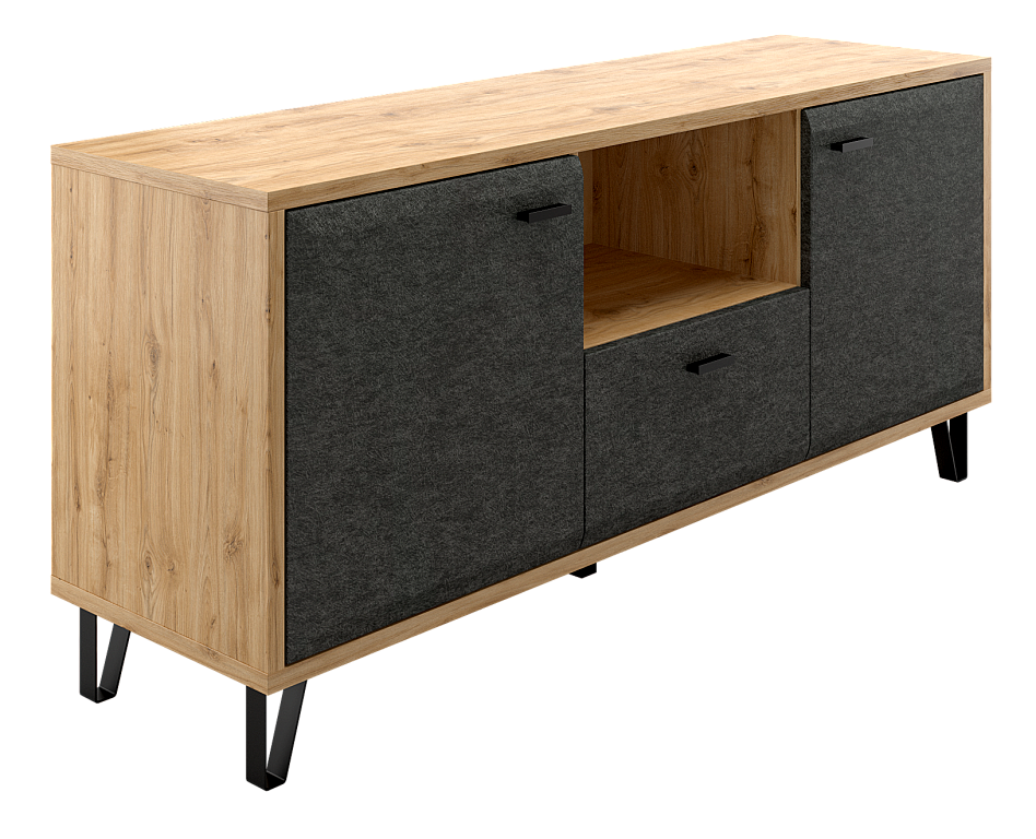 - Скругленная форма фасада в цвете "Графит" и стильные металлические ножки позволят безупречно оформить вашу гостиную.