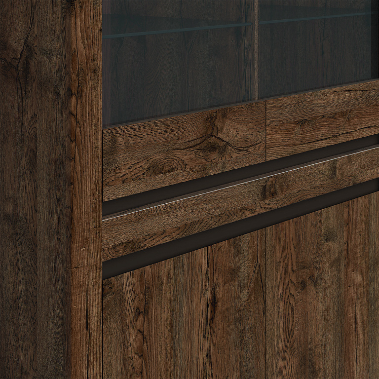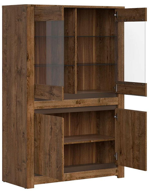 • Верхнее: отделение со стеклянными полками за распашными дверями со стеклянной вставкой;