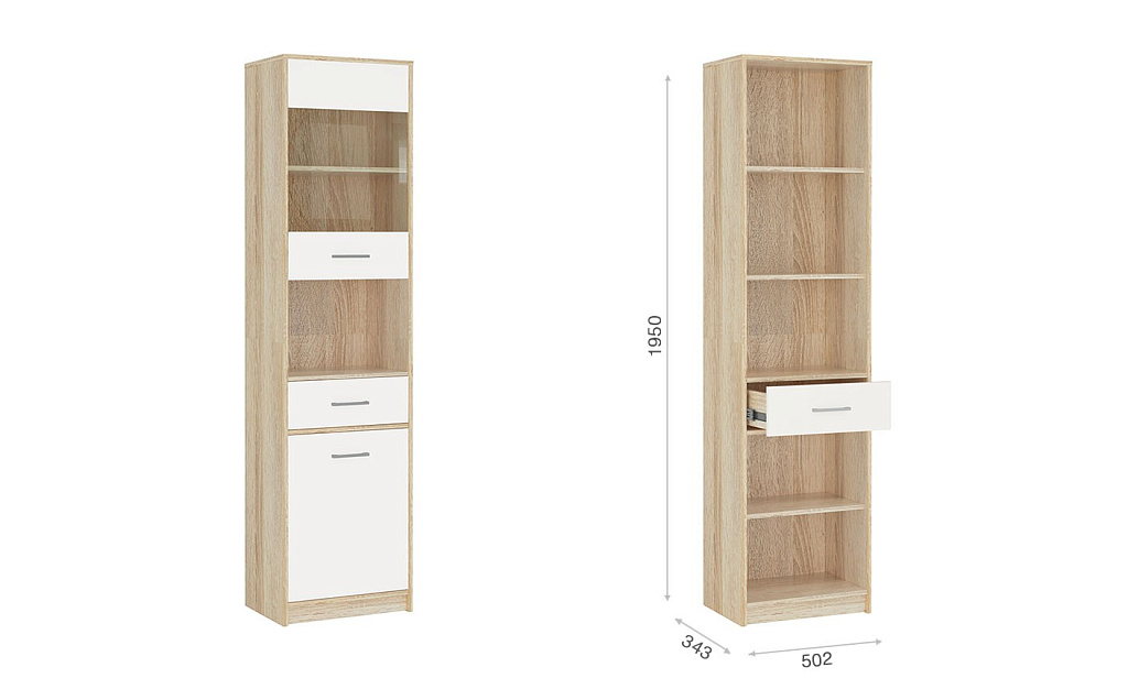 Шкаф-Пенал 1в1д1ящ Стелс Сонома/Белый