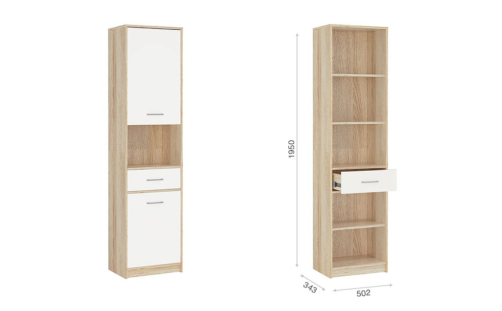 Шкаф-Пенал 2д1ящ Стелс Сонома/Белый