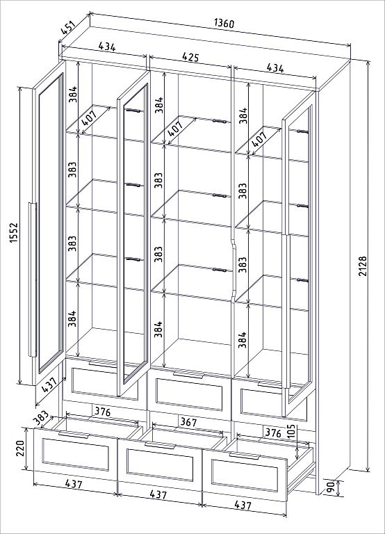 Шкаф с витриной (с подсветкой) КТ-ШВ3 Концепт Тренд