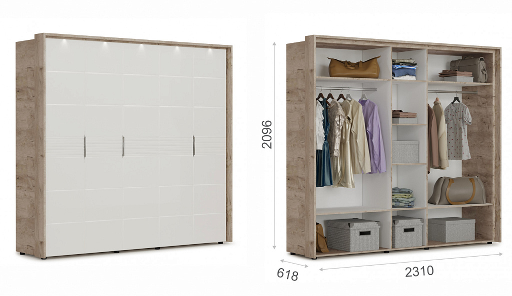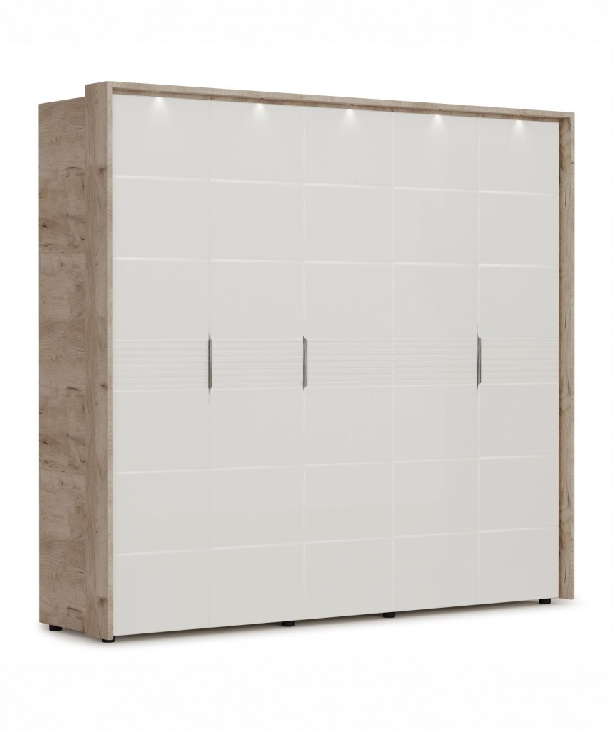 Шкаф 5дв (ДДДДД) с порталом Джулия Крафт серый/Белый глянец